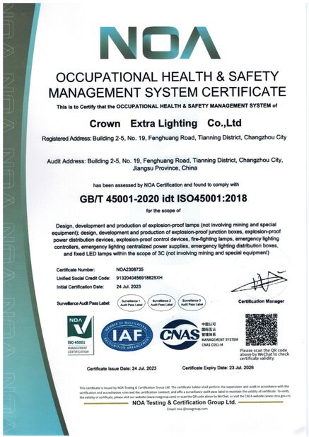 De acordo com o padrão à prova de explosões nacional de GB3836.1/GB3836.2-2010 da República Popular da China, a empresa passou o teste de desempenho do centro de iluminação nacional da supervisão e da inspeção da qualidade e obteve o relatório à prova de explosões do certificado e de teste; subseqüentemente, obteve a certificação do sistema de gestão tal como a certificação da UE ATEX, ISO9001: 2008, certificação de RoHS e licença de produção. A empresa é equipada com o equipamento de fabricação avançado e o equipamento de testes, manda um R altamente qualificado e experiente & uma equipe técnica e uma equipe diretiva de D, no acordo restrito com o sistema de gestão para a gestão de empresa, o projeto de produto, o controle da qualidade do processo e o feedback, assegurar eficazmente a qualidade da iluminação à prova de explosões e dos serviços do diodo emissor de luz.